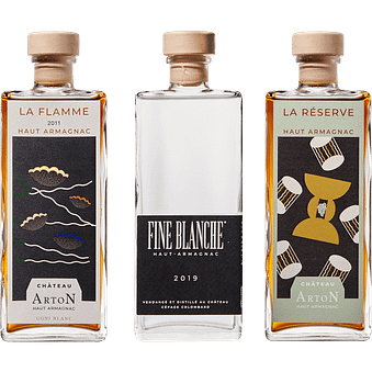 - À la différence du Cognac, l’Armagnac peut être millésimé : les cuvées sont alors issues d’une seule et même année de distillation. Grâce à la singularité de l’alambic armagnacais qui permet à l’Armagnac d’exalter la saveur du vin dont il est issu, l’empreinte de l’année, la signature du terroir et le goût du cépage restent présents dans l’eau-de-vie. L’Armagnac est millésimé, comme un grand vin, pour révéler cette palette aromatique unique liée à l’évolution du vin encore vivant dans le fût de chêne où il repose. L’Armagnac millésimé provient parfois d’un seul et même fût. On le nomme alors « Rare Fût Unique » ou « Pièce Unique ». La date du millésime (année de récolte du raisin), plus significative que la durée de vieillissement, est inscrite sur l’étiquette, comme c’est le cas pour le vin. La durée de vieillissement d’un millésime n’est pas réglementée par un décompte d’âge spécifique. La plupart des maisons d’Armagnac publient des millésimes qui ont vieilli au moins 10 ans. Au domaine d’Arton, nous publions des millésimes très jeunes car notre terroir unique nous le permet. Nous pensons que la qualité de l’Armagnac ne dépend pas de son âge, mais bien de la maîtrise de chaque étape de son élaboration de la vigne au vin, et du vin à l’Armagnac.