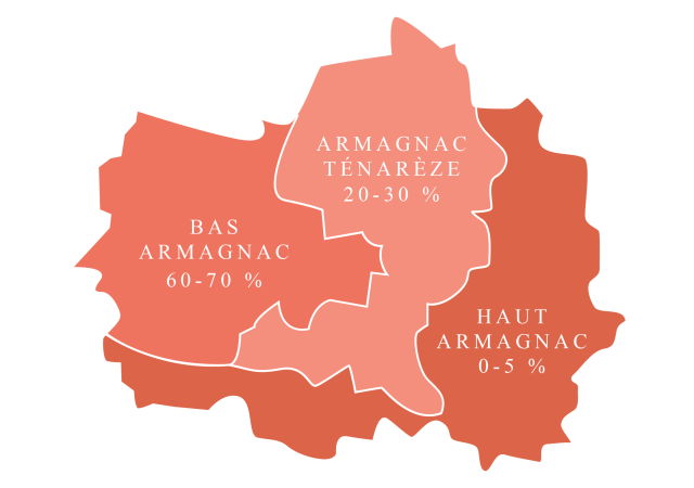 Si l’AOC Haut-Armagnac recouvre le plus vaste territoire de la région Armagnac, elle ne représente que 2% des surfaces totales de production de l’eau-de-vie gasconne. La rareté et l’originalité de cette appellation en font une eau-de-vie très prisée des connaisseurs.