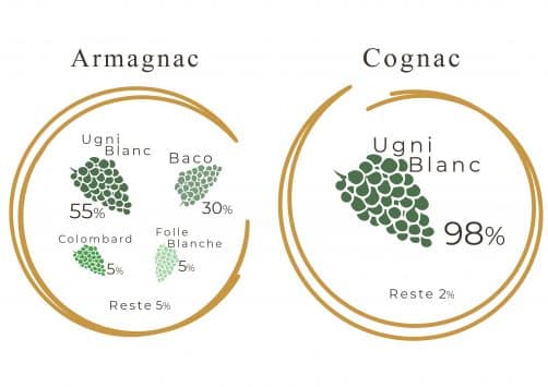 L’Armagnac est produit dans le Sud-Ouest de la France (le département du Gers, l’Est des Landes et le Sud du Lot-et-Garonne) alors que le Cognac est produit 300km plus au Nord (Charente, Charente-Maritime, une partie de la Dordogne et des Deux-Sèvres).