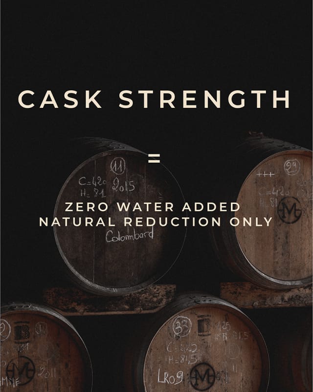 Le « cask strength » est le fait de réduire la teneur en alcool sans rien faire, par la seule force de l’évaporation naturelle. Rien n’est ajouté. Et rien n’est enlevé. C’est le cas des millésimes La Flamme® et Pièces Uniques de Château Arton.